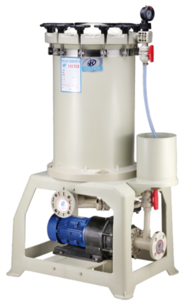 藥液過濾機(jī)法蘭裝置時分要留意,需求加墊圈。并且四個螺絲也有必要的裝備相應(yīng)的墊圈,防止后續(xù)操作進(jìn)程中的漏水。螺絲最佳是選用不銹鋼的,塑料螺絲壽數(shù)欠好,并且很簡單發(fā)絲。留意螺絲有必要得擰緊。 4.裝置時應(yīng)提早了解電鍍液體 這個能夠與電鍍供貨商了解,電鍍時分應(yīng)留意盡量不要和電鍍液體有直接觸摸,能夠帶防水手套。