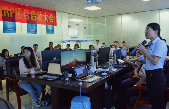 ERP實施小組組長容川作為本次會議的主持人介紹了金蝶ERP項目的背景、目標、規(guī)劃、價值和組織情況,并明確了項目實施計劃節(jié)點與策略。以信息化建設(shè)的“核心”為目標,使企業(yè)數(shù)據(jù)得以精細化管控,建立業(yè)務(wù)部門之間協(xié)同體系。使原有碎片化的信息關(guān)聯(lián)起來,通過電子表格變成信息集成化,以此來提高公司整體運作速度;采購、生產(chǎn)計劃的精確投放;降低零部件庫存成本;實現(xiàn)傳統(tǒng)管理到精細化管理的轉(zhuǎn)變。