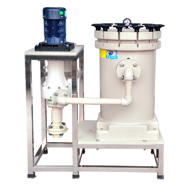 設(shè)備采用無(wú)軸封磁力泵,耐高溫且可空轉(zhuǎn),避免傳統(tǒng)泵因干燒損壞;PP或PVDF材質(zhì)的濾筒耐強(qiáng)酸堿腐蝕。當(dāng)濾渣積累至極限或流速過(guò)低時(shí),系統(tǒng)需停機(jī)進(jìn)入濾渣清除到濾芯再生階段:開(kāi)啟排污閥排出殘液,拆卸濾芯清洗或更換,完成后重啟循環(huán)。