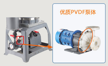 杰凱酪酸過(guò)濾機(jī)配備的泵浦主體部分材質(zhì)為PVDF材質(zhì),具有很強(qiáng)的耐腐蝕性,能完全滿(mǎn)足鉻酸鍍液循環(huán)過(guò)濾工作要求,有效提高了過(guò)濾機(jī)的效力和使用壽命。