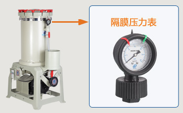 杰凱過濾機(jī)配備的壓力表是目前市面上隔膜壓力表。隔膜壓力表不僅比普通的過濾機(jī)壓力表穩(wěn)定性好,使用壽命長;特點(diǎn)是可以防止藥水泄漏,不像普通壓力表容易造成藥水泄漏。