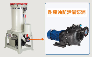 杰凱過濾機(jī)JK2012-3018使用的泵浦是耐腐蝕泵浦,具備較強(qiáng)的耐腐蝕性,能適合各種酸堿藥液循環(huán)過濾;同時泵浦采用獨(dú)特設(shè)計,可以有效防止藥水泄漏。