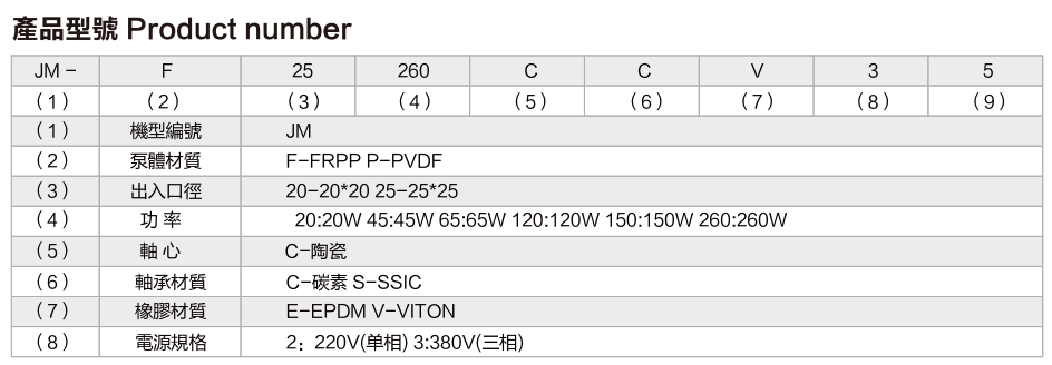- 型號說明