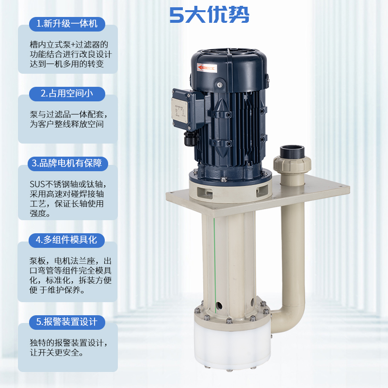 1、采用進(jìn)口/上市企業(yè)優(yōu)質(zhì)原生料,大幅提高產(chǎn)品強(qiáng)度及耐腐蝕性; 2、特制的桿式軸封,配合SUS金屬或TI金屬一體軸,可耐空轉(zhuǎn)、防腐蝕,提高電機(jī)壽命; 3、創(chuàng)新型葉輪設(shè)計(jì),一體成型工藝,效率高、性能穩(wěn)定、壽命長(zhǎng); 4、獨(dú)特的反葉輪設(shè)計(jì),減少水力損失,杜絕泄漏; 5、完全可空轉(zhuǎn)運(yùn)行,絕不因空轉(zhuǎn)而損壞泵浦; 6、適合各種酸堿液體循環(huán),適用于冷卻、噴洗、蝕刻、廢水處理等制程。