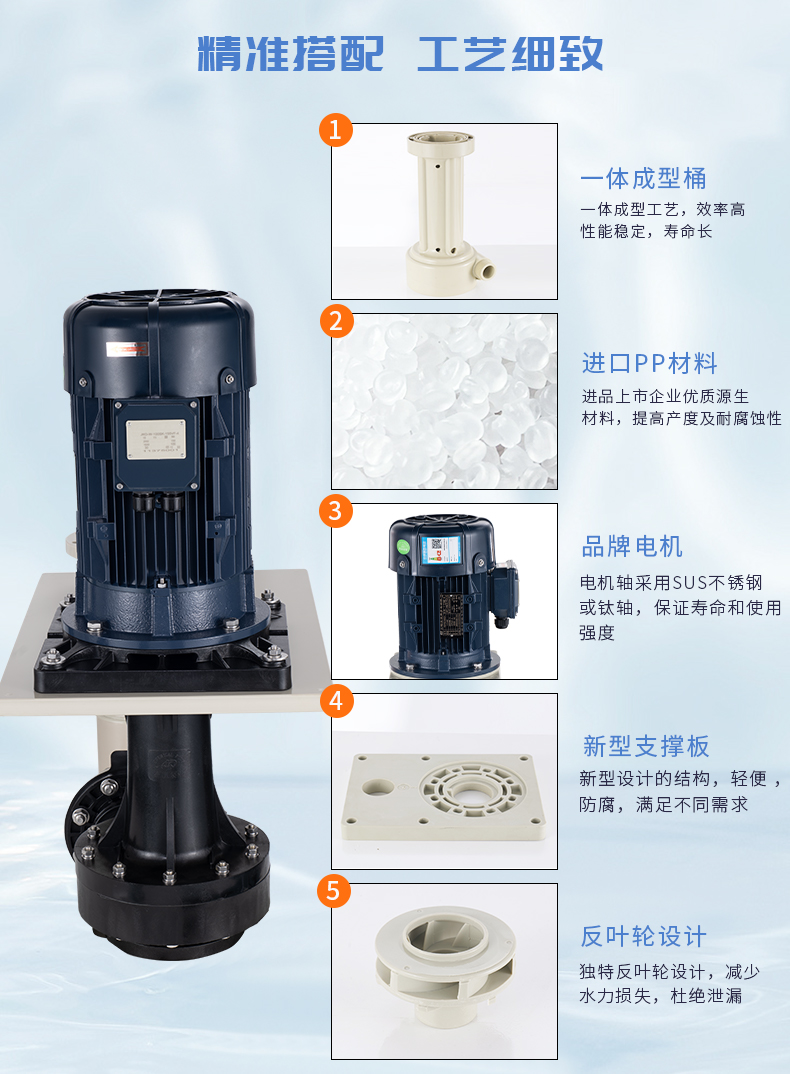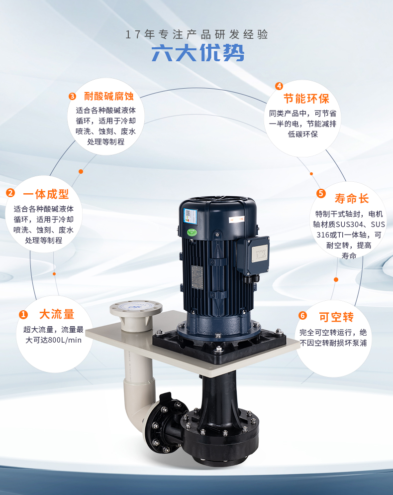1、采用進(jìn)口/上市企業(yè)優(yōu)質(zhì)原生料,大幅提高產(chǎn)品強(qiáng)度及耐腐蝕性; 2、特制的桿式軸封,配合SUS金屬或TI金屬一體軸,可耐空轉(zhuǎn)、防腐蝕,提高電機(jī)壽命; 3、創(chuàng)新型葉輪設(shè)計(jì),一體成型工藝,效率高、性能穩(wěn)定、壽命長(zhǎng); 4、獨(dú)特的反葉輪設(shè)計(jì),減少水力損失,杜絕泄漏; 5、完全可空轉(zhuǎn)運(yùn)行,絕不因空轉(zhuǎn)而損壞泵浦; 6、適合各種酸堿液體循環(huán),適用于冷卻、噴洗、蝕刻、廢水處理等制程。